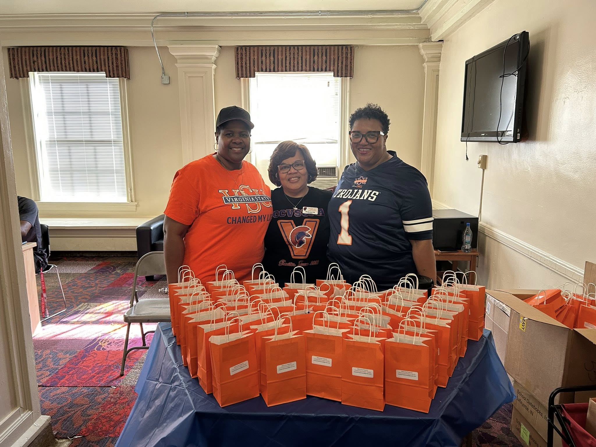 VSUAA Chesterfield County members were at it again! On Saturday, August 9th, they took advantage of another volunteer opportunity during VSU's freshmen move-in. The chapter adopted Seward Residence Hall. One hundred treat bags were prepared, and volunteers were eager and ready to greet students and their families as they moved into Seward and other surrounding dorms. We had a blast welcoming families inside and outside the residence halls! The excitement was in the air!
