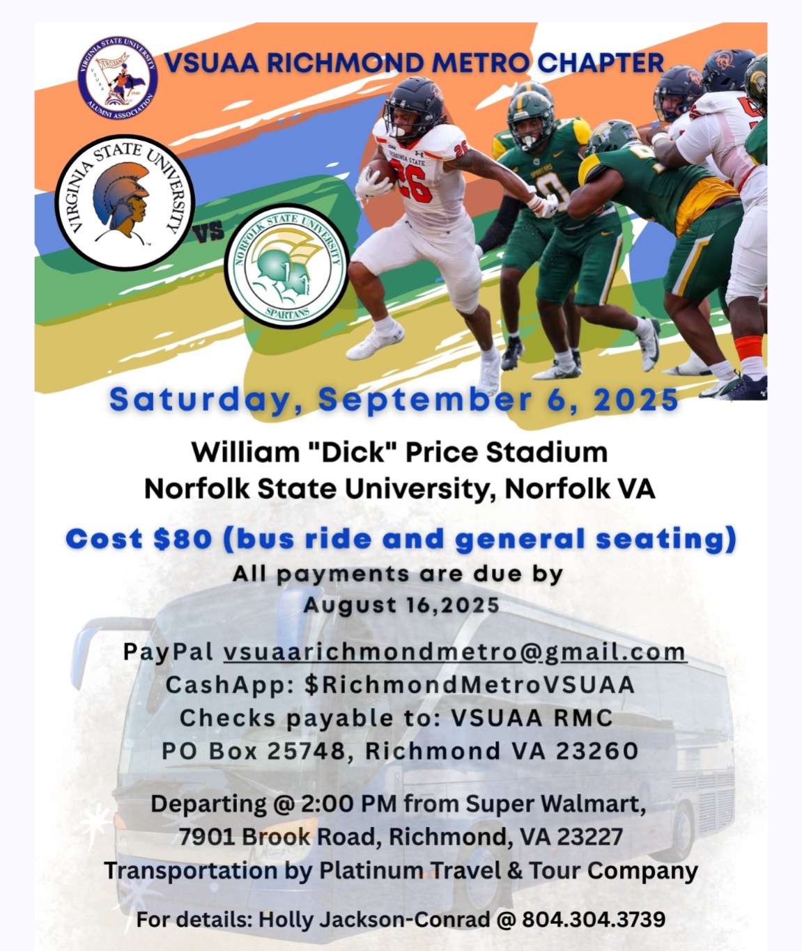 Travel with us for the Battle of the States Football Game between VSU and NSU on Saturday, September 6, 2025.